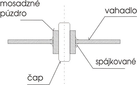Preto musí byť vahadlo vyrobené z oceľového plechu hrúbky 1 mm, pre modely kategórie F2B, prípadne väčšie a ťažšie modely z 1,5 až 2 mm. Bod otáčania - otvor v jeho strede vypúzdrime mosadzným puzdrom tak, že puzdro prispájkujeme do vahadla. Otvor v tomto ložisku musí byť natoľko presný, aby sa dalo ľahko nasunúť a otáčať na čape, ale aby malo minimálnu vôľu (obr.6)